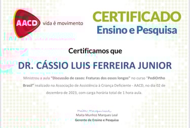 Especialista em Reconstrução e Alongamento Ósseo (adulto e pediátrico)